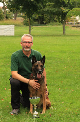 Eine besondere Leistung erzielte unser Heiko mit seinem Boomer, der mit sich 93 Punkten in der Unterordnung auch den Wanderpokal sicherte.
